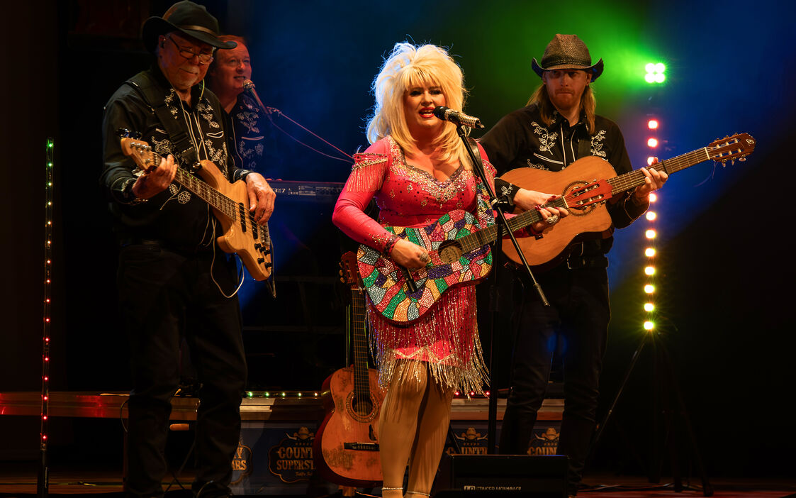 Dolly Parton, Kenny Rogers, Patsy Cline, Johnny Cash, Billie Jo Spears, Willie Nelson, Tammy Wynette, Garth Brooks, John Denver, Shania Twain, Lainey Wilson and Luke Combs all backed by the phenomenal Country Superstars Band.